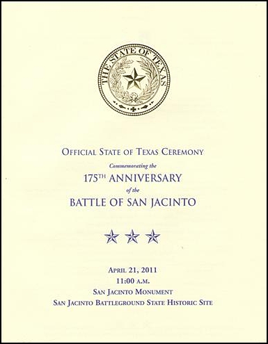 The 2011 Planning Committee wishes to express appreciation to the staff of the Texas Parks & Wildlife Department and the San Jacinto Museum of History for their ouststanding support of this year’s ceremony.