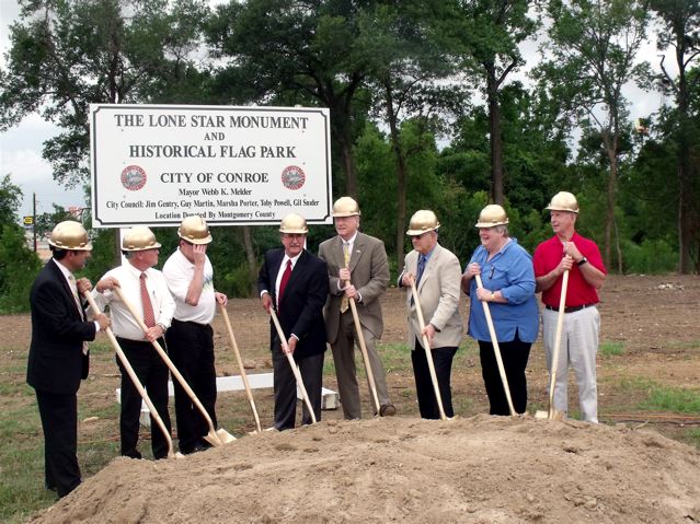 The Lone Star Monument and Historical Flag Park Groundbreaking was held June 24, 2010 where the park will begin construction adjacent to the Montgomery County Memorial Library (I-45 in Conroe). The land was donated by Montgomery County for the park and was a city/county cooperative effort. The vision of making it The Lone Star Monument and Historical Flag Park came from Craig Campobella and the “Friends of the Flag” with the creation of the statue known as “The Texian” and the added sculpture of Dr. Charles B. Stewart by Campobella.
