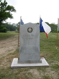 A Centennial Marker dedicated to Madam Powell in 1936 was re-dedicated on Saturday, May 1, 2010. This marker had been knocked down over the years and the Texas Star had been removed by vandals. The San Jacinto Chapter of the Sons of the Republic of Texas took a leading role in the repair and cleaning of the Madam Powell 1936 marker. Jack Wendt, who now owns the property, up-righted the marker and improved the road to the marker site.
