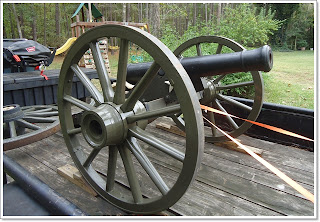 On November 12, Rolling Thunder, the cannon of the Lone Star Volunteers, came home with a new set of wheels. The Lone Star Volunteers attend Texas historic events all over the State of Texas demonstrating Rolling Thunder. Rolling Thunder is a three-quarter scale replica of an 1841 Mississippi field cannon and is similar in size to the 6 pound Twin Sisters cannons used by the Texians to win their independence from Mexico in the Battle of San Jacinto on April 21, 1836. As you can see in the photograph above, Rolling Thunder is a real firing cannon. The picture above is a picture of Rolling Thunder taken at the Texian Navy Day Celebration held at the Battleship Texas in the San Jacinto State Park near LaPorte on September 17, 2011.