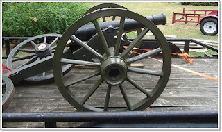 Recently the Lone Star Volunteers discovered that Rolling Thunder’s 160 year-old wagon wheels were coming apart at the seams from the dryness of our recent Texas drought and the summer heat. It was customary during the Revolutionary and Civil War eras to pull the cannons down into a creek to let the water soak into the hubs and spokes of the wheels, so the cracks in the wood would swell and close up.